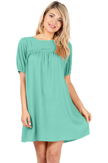 - Crafted from your favorite Soft and Comfy Poly Spandex fabric and Cut to A slim-yet-easy shape this t-shirt dress features a Flattering V-neckline, and Comfortable, easy-moving dolman sleeves. With the perfect length that Falls to just above the knee, this dress is available in a variety of printed styles with contrasting sleeves.